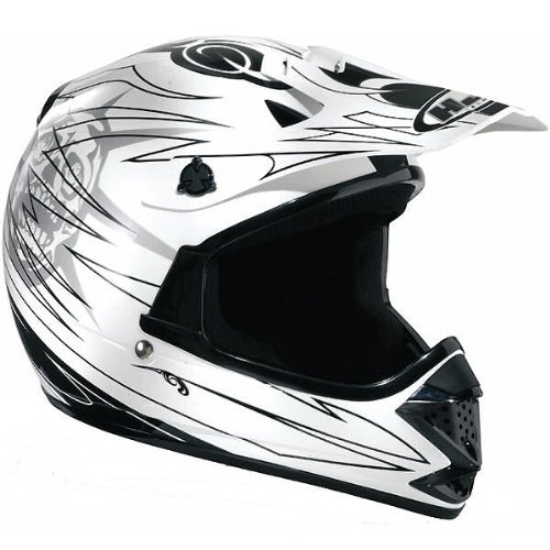 Le fabricant Coréen HJC propose pour les enfants ce casque de Moto Cross nommé MINION.Le CLX5NY, ici dans sa version Noir et Blanc, représente des motifs tribaux et des crânes.Faits pour s'adapter parfaitement à la tête de votre enfant, il dispose d'un intérieur démontable et lavable.Un Système de ventilation à canaux "ACS" permet une bonne aération de la tête.La coque en polycarbonate injecté est résistante (1200 grs) et a une large découpe pour lunettes. Le casque possède une fermeture de jugulaire par attache double D et il est Homologué à la norme ECE22.05