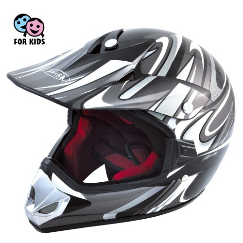 Akira 20263 Casque Moto Ishido Kids Motocross/MX pour Enfants, Argent/Noir, M