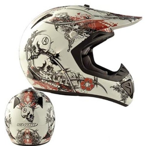Très Abordable Casque moto cross CHOK SKULL 2013 - Blanc / Noir - Taille XS - Actuellement Disponible!